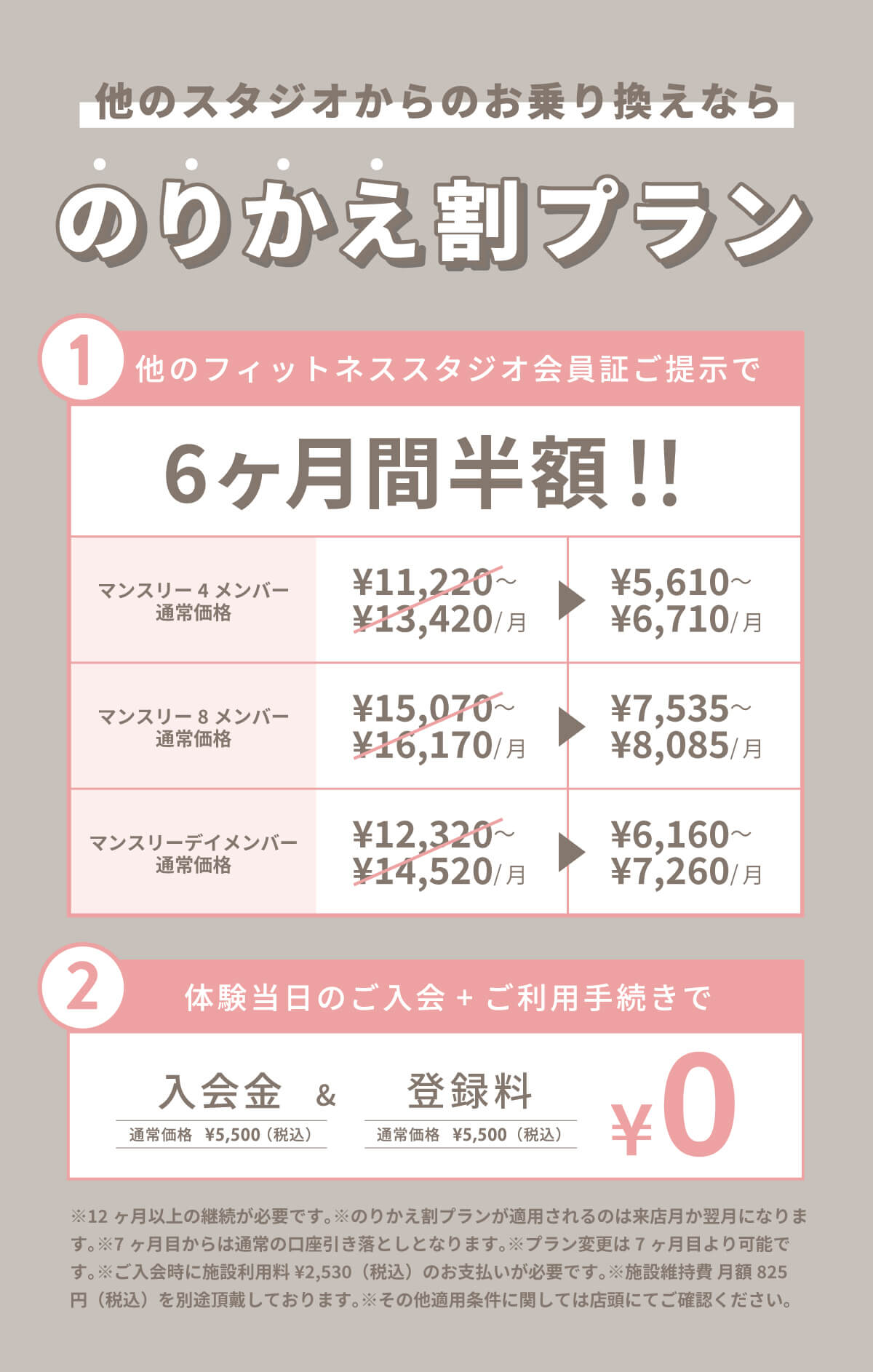 他フィットネススタジオからの「のりかえ割」プランのご案内